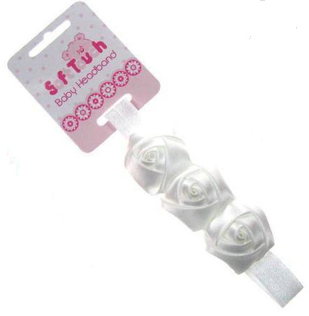 De haarband is gemaakt van satijn en er zitten 3 roosjes op de band. De haarband is one size en is te dragen vanaf 0 tot 12 maanden.