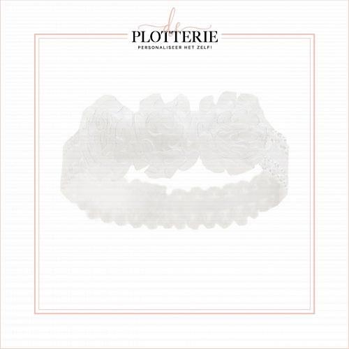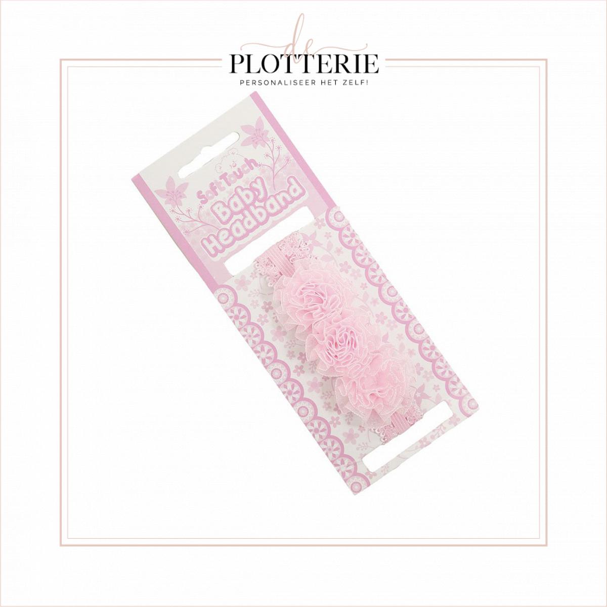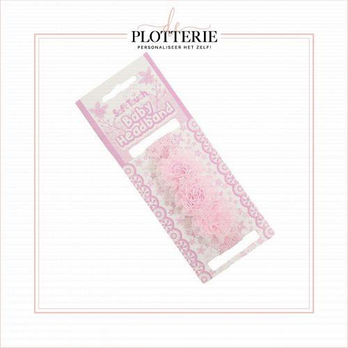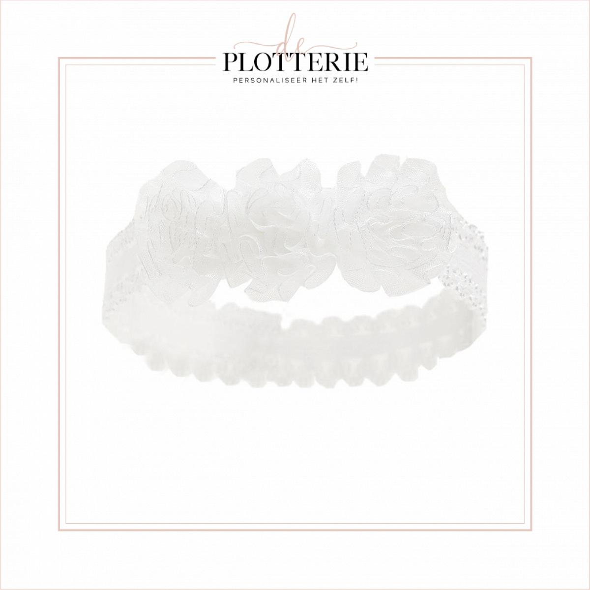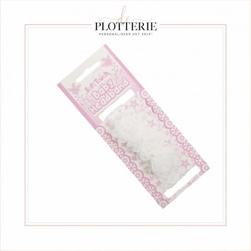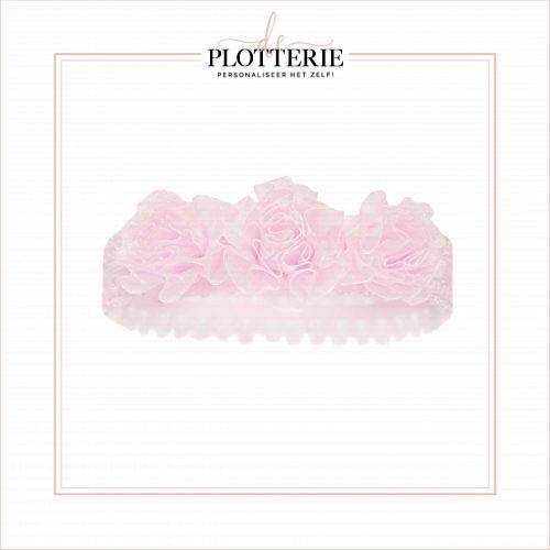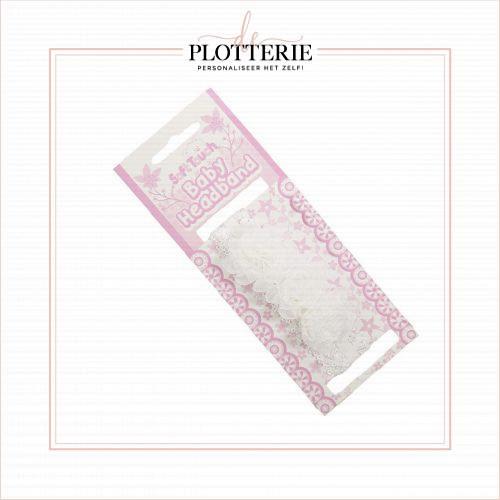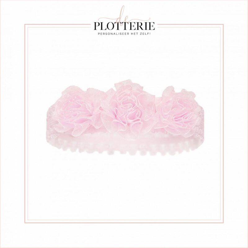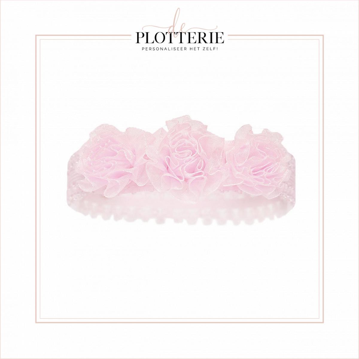Snoezig haarbandje met 3 kanten bloemetjes en glans draad details.