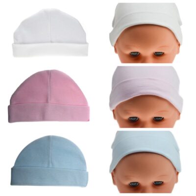 Mooie zachte mutsjes met een knoop bovenop en een omgeslagen bies.