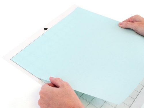 U plakt het materiaal, zoals flex, flock, vinyl of papier, op de snijmat en voert de mat door in de Cameo.