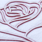 Na het snijden van de flex heeft de omtrek een contrasterende kleur. Het onderste deel van deze, uit twee lagen bestaande flex, neemt iets in volume toe en de bovenste laag van de flex krimpt iets bij het persen, waardoor de 2 kleurige omtrek ontstaat. Het persen of wassen kan de dunne bovenste laag iets onregelmatig of enigszins gekreukt maken.