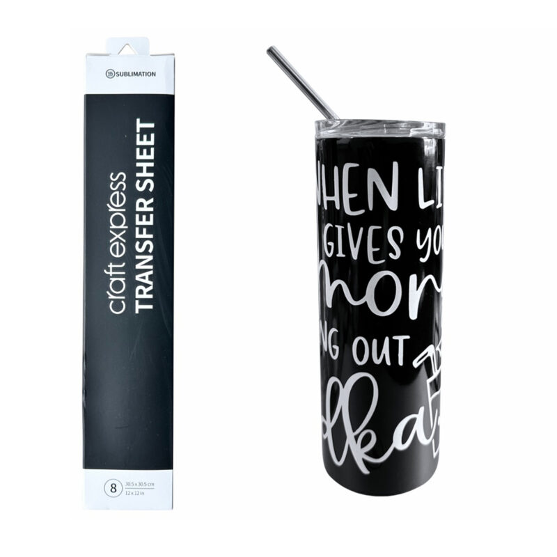 Een mooi pakket van 8 vellen zwarte sublimatie transfer sheets. Met deze vellen heeft u geen sublimatieprinter nodig om toch mooi gesublimeerde artikelen te maken. Knip of snij met de plotter uw favoriete ontwerp uit en pers deze op een mok, spaarpot, sleutelhanger, t-shirt en nog veel meer artikelen welke geschikt zijn voor sublimatie.