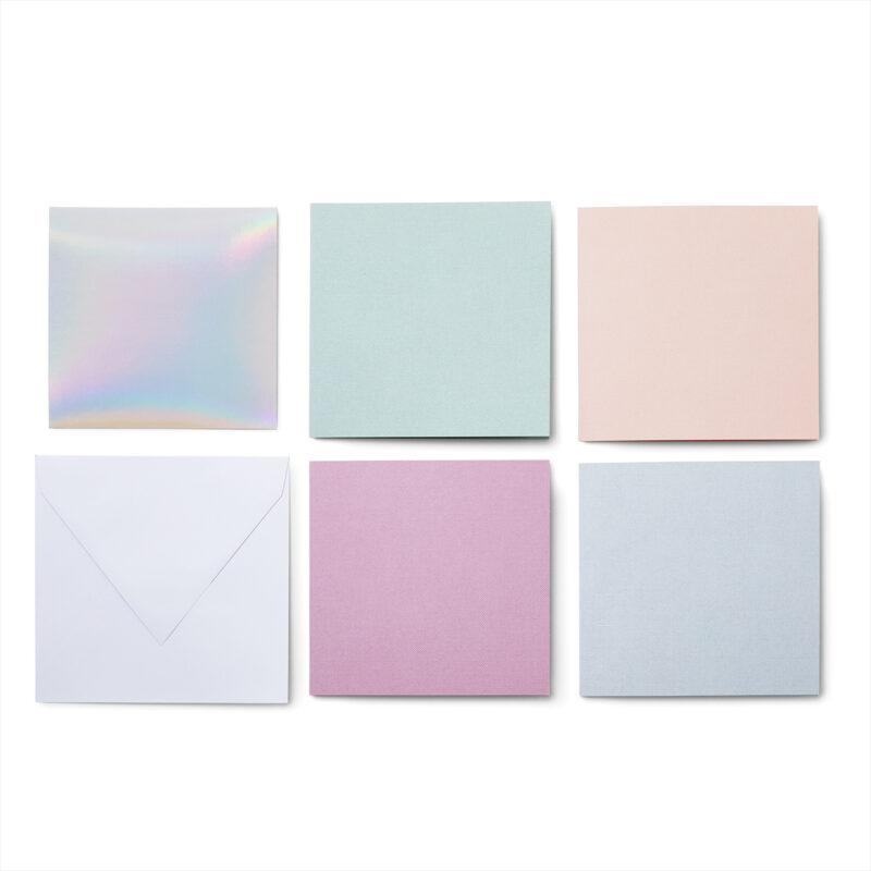 Maak je eigen persoonlijke kaarten met deze Cricut® Insert Cards. Snijd uw ontwerp uit met uw Cricut Machine om de kleur van het inzetstuk naar voren te brengen. Deze set bestaat uit kaarten in4 verschillende kleuren, inzetstukken en witte enveloppen.