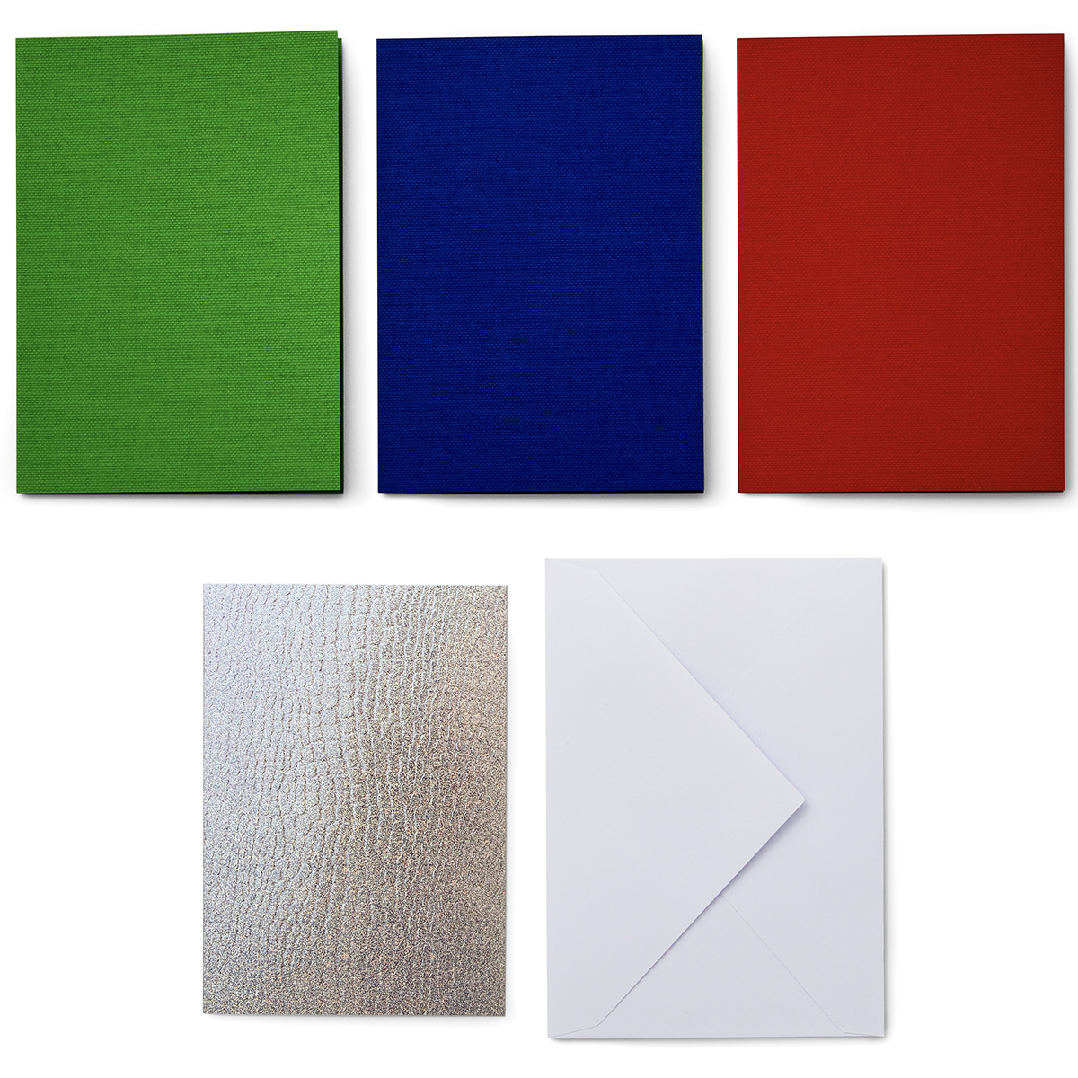 Maak je eigen persoonlijke kaarten met deze Cricut® Insert Cards. Snij uw ontwerp uit met uw Cricut Machine om de kleur van het inzetstuk naar voren te brengen. Deze set bestaat uit kaarten in 3 verschillende kleuren, inzetstukken en witte enveloppen.