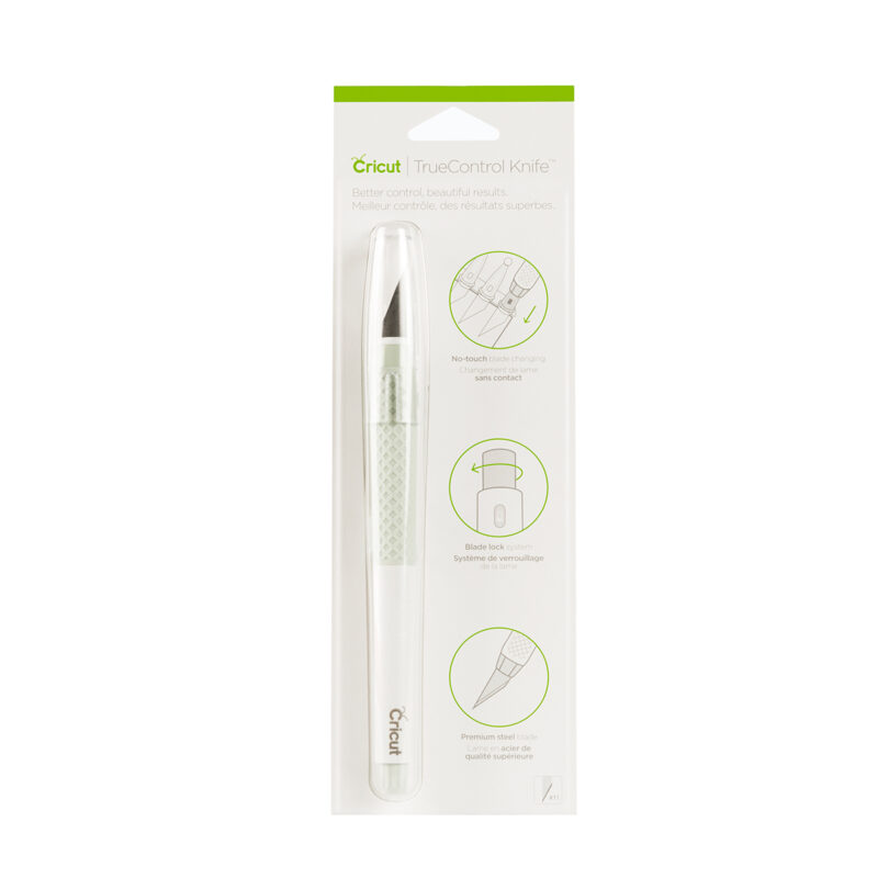 De TrueControl Knife met zijn vlijmscherpe rand, prikpunt en superieure systeem voor mes-vergrendeling, is gemaakt voor precisie werk met prachtige resultaten. Te gebruiken met meerdere materialen. Het handenvrij mes-wissel-systeem is uniek omdat je nooit een mes hoeft aan te raken. Het antirol-ontwerp voorkomt dat het mes valt of wegrolt. Door de comfortabele, zachte grip kun je urenlang moeiteloos werken.