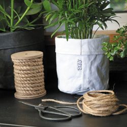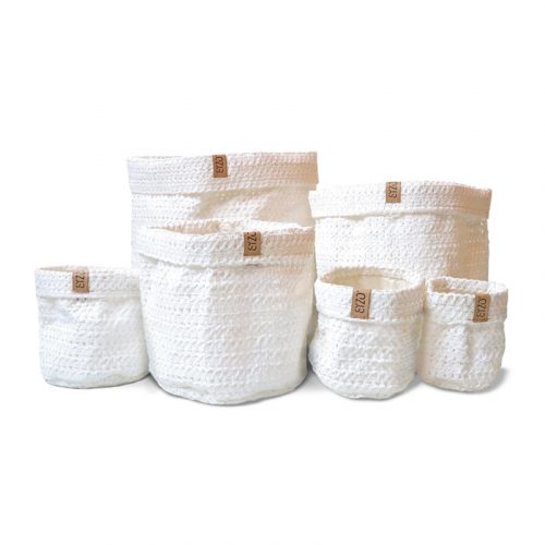 Leuke gebreide, papieren mand met kunststof binnenkant waardoor deze waterdicht is en geschikt om een plantje in te zetten. Deze nieuwe trendy mand is gemaakt van duurzaam en milieuvriendelijk papier en vervaardigd met eerlijke materialen.