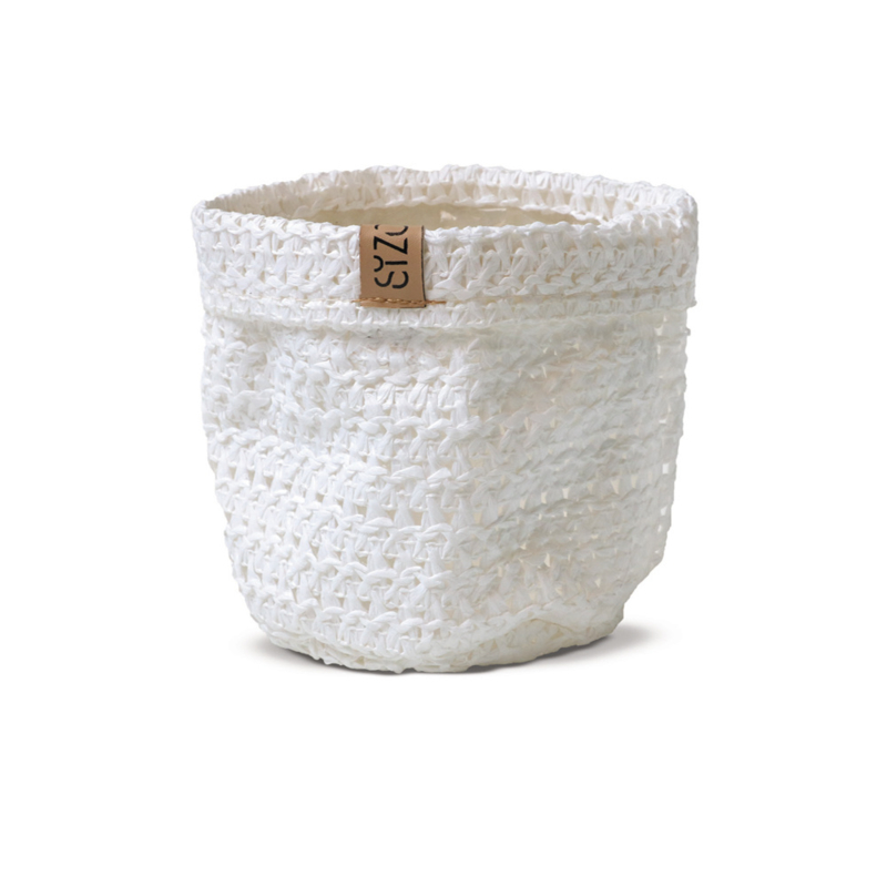 Leuke gebreide, papieren mand met kunststof binnenkant waardoor deze waterdicht is en geschikt om een plantje in te zetten. Deze nieuwe trendy mand is gemaakt van duurzaam en milieuvriendelijk papier en vervaardigd met eerlijke materialen.