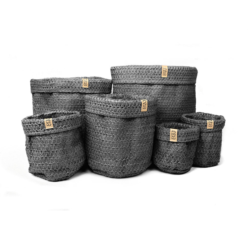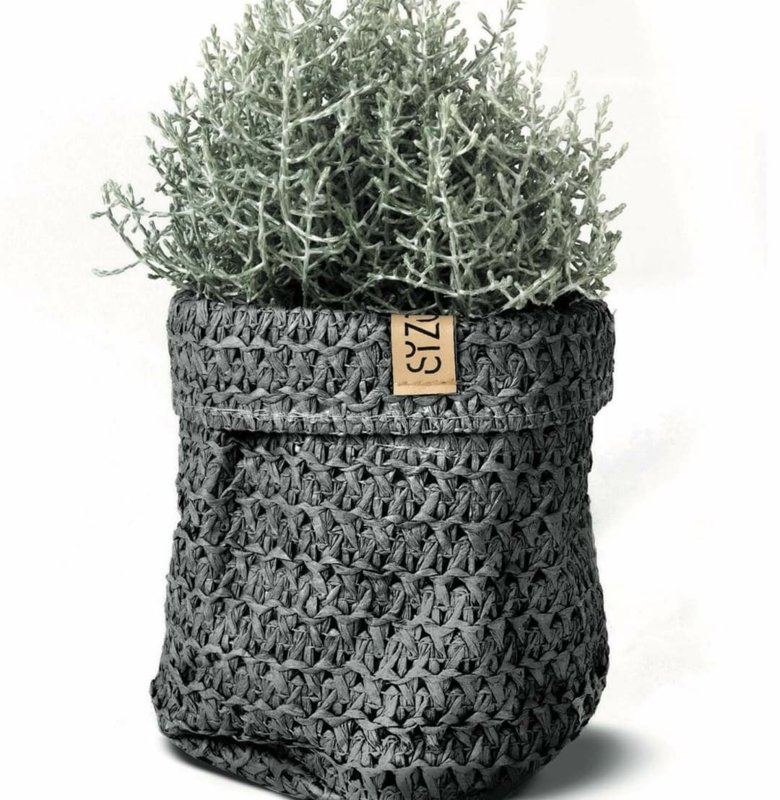 Leuke gebreide, papieren mand met kunststof binnenkant waardoor deze waterdicht is en geschikt om een plantje in te zetten. Deze nieuwe trendy mand is gemaakt van duurzaam en milieuvriendelijk papier en vervaardigd met eerlijke materialen.