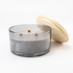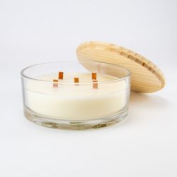 Het potje kan afgesloten worden met een deksel van kurk. De kaars heeft een heerlijke rozengeur.