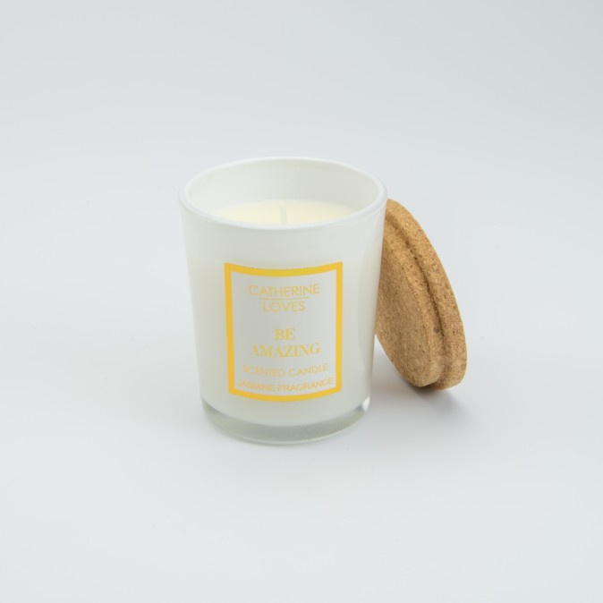 Geurkaars | Wit Glas met deksel van Kurk | Jasmijngeur | Medium