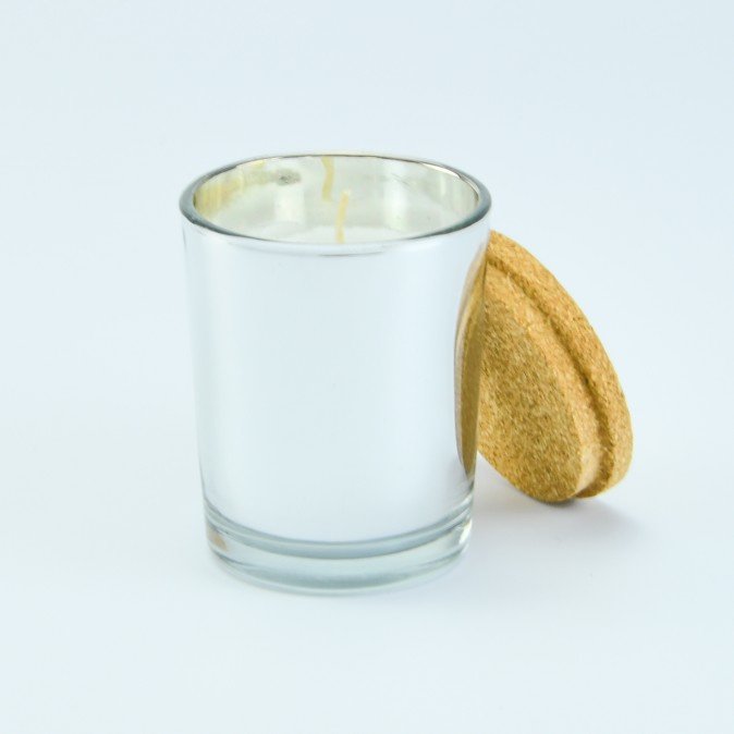 Geurkaars | Zilver Glas met deksel van Kurk | Cederhout geur | Medium