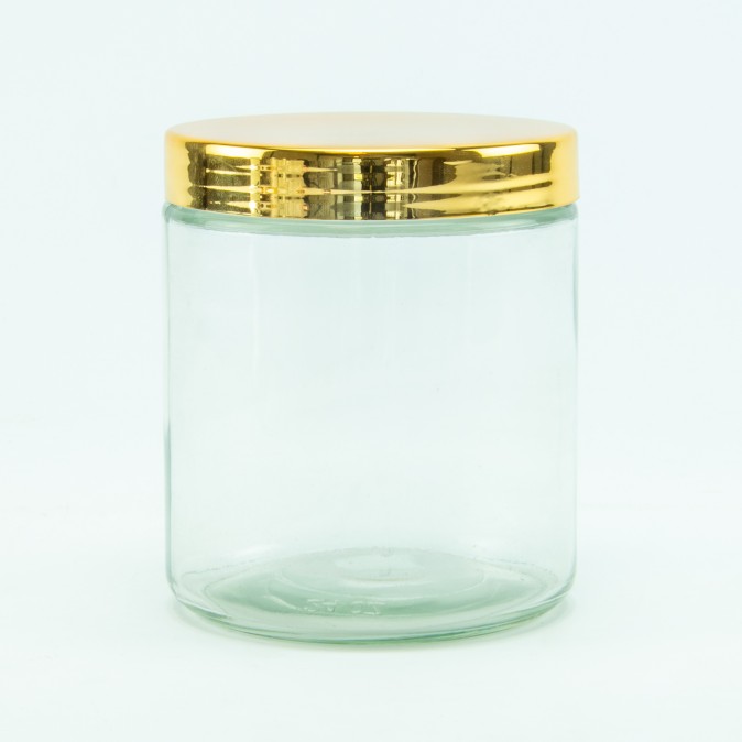 Model:Â Cilindervormige pot met metallic goud-kleurige schroefdop