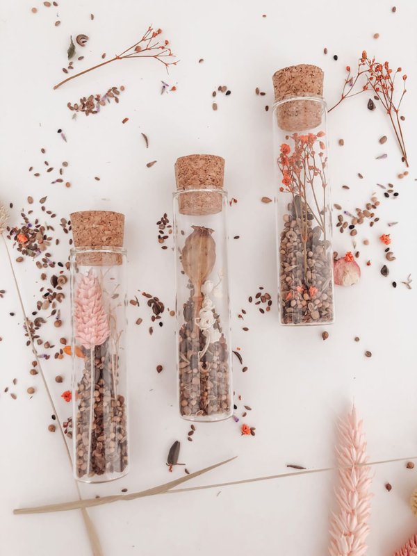De reageerbuisjes misstaan ook zeker niet als u ze bijvoorbeeld vult met droogbloemen en ter decoratie in de woonkamer plaatst.