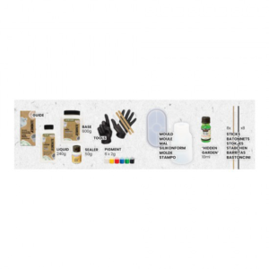 pigmenten, herbruikbare siliconen vormen en stapsgewijze instructies die je door elke fase leiden.