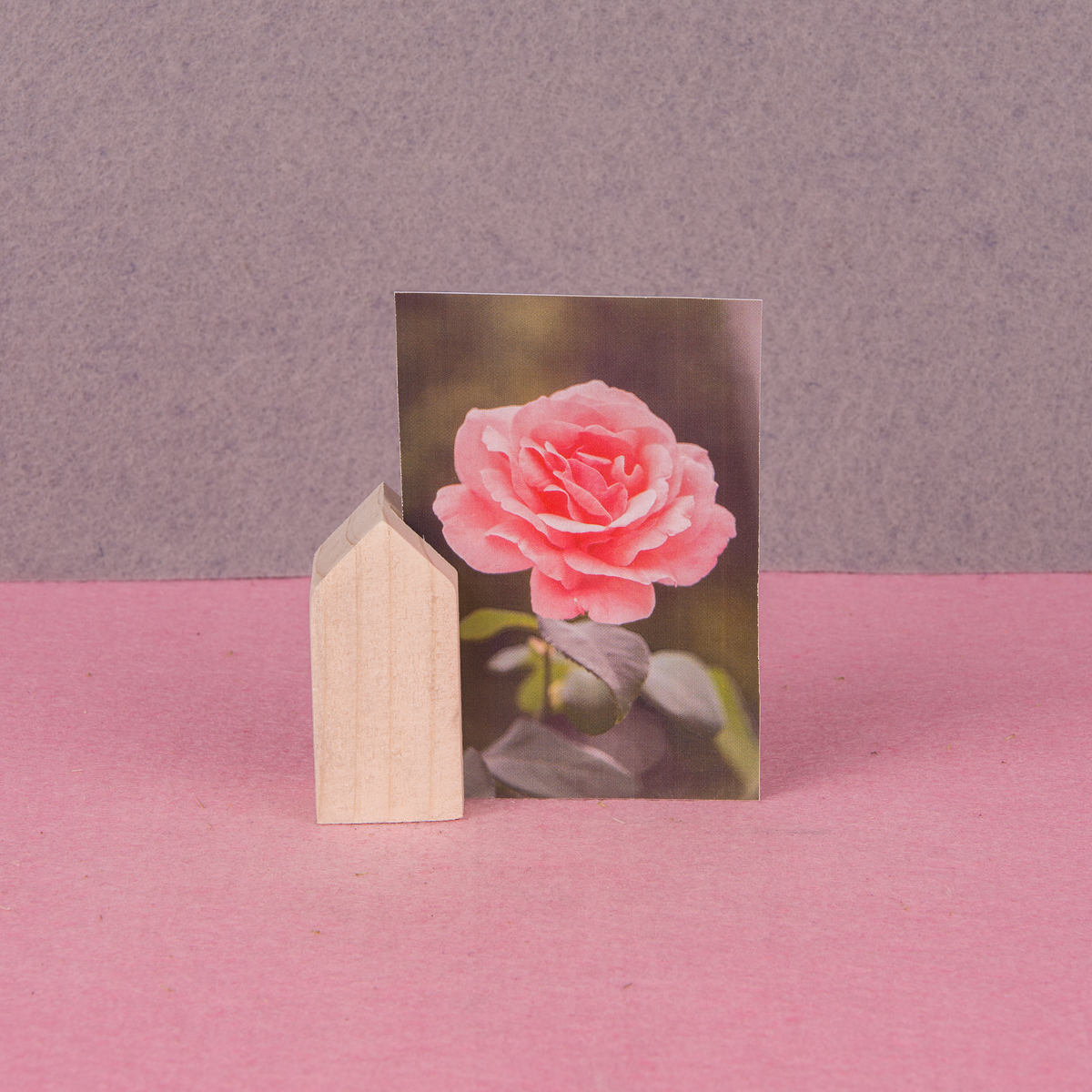 Lief klein houten huisje met een zijsleuf voor een kaart.