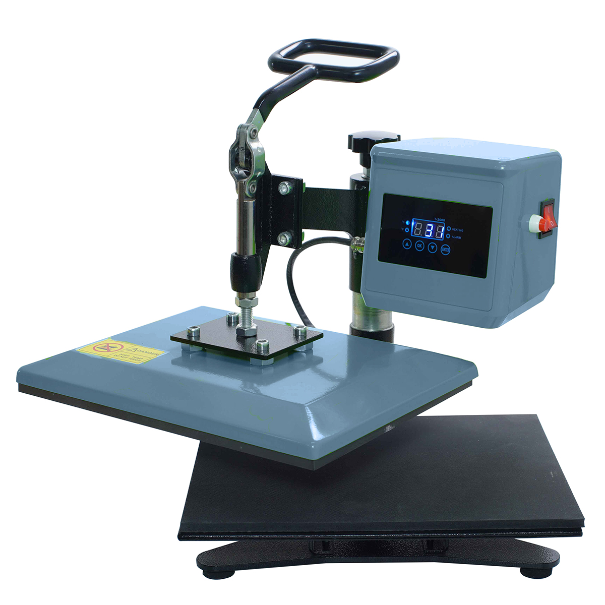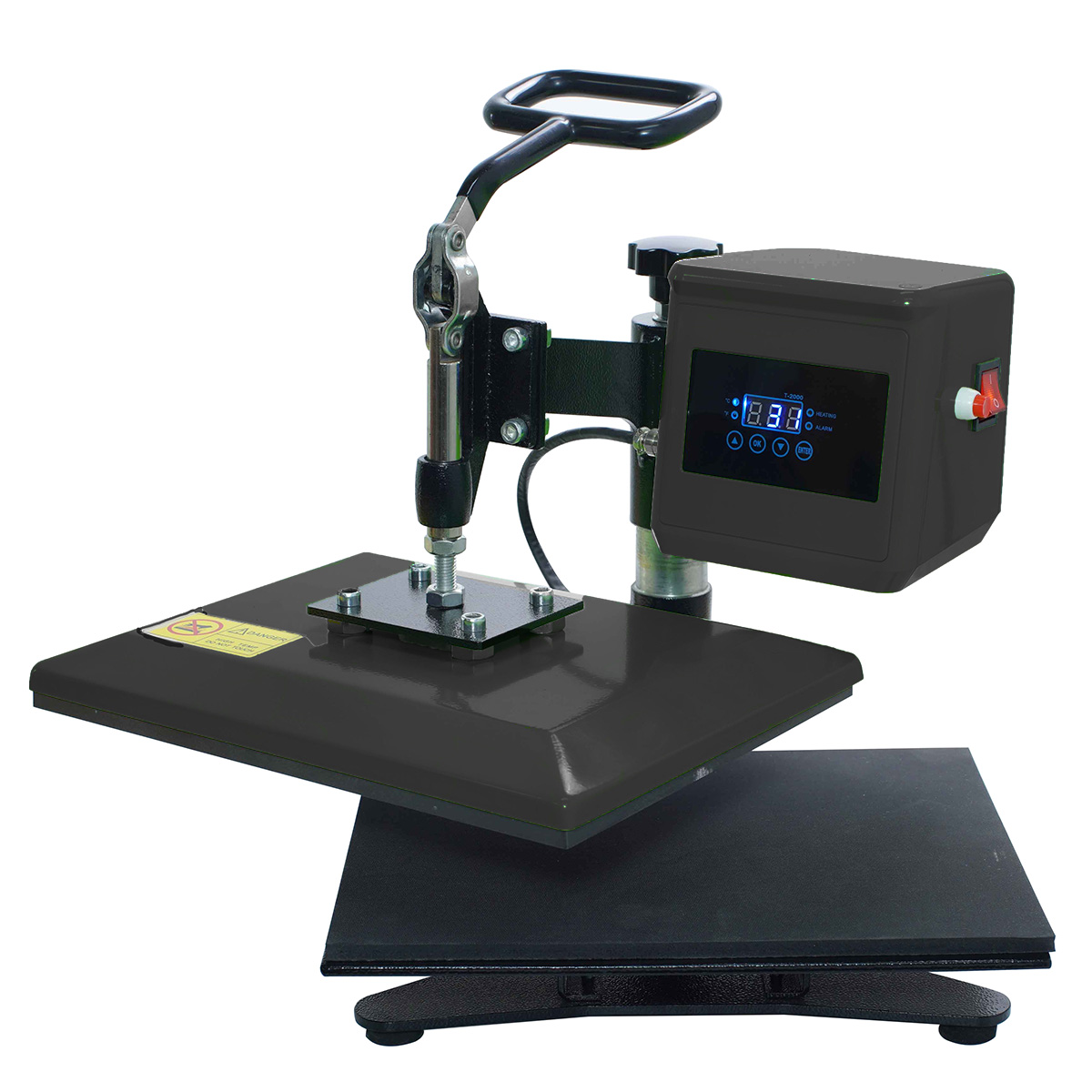 Deze transferpers (of hoe de pers ook wel genoemd wordt: hittepers, heatpress, warmtepers, kledingpers, drukpers, textielpers, DIY heat press) is een uitstekende keuze voor hobbyisten die hun textiel op een professionelere wijze willen bedrukken in plaats van met de strijkbout, zodat een bedrukking na een paar keer dragen en/of wassen niet meer loslaat. Drie zaken zijn zeer belangrijk bij bedrukkingen: de druk, temperatuur en tijd!