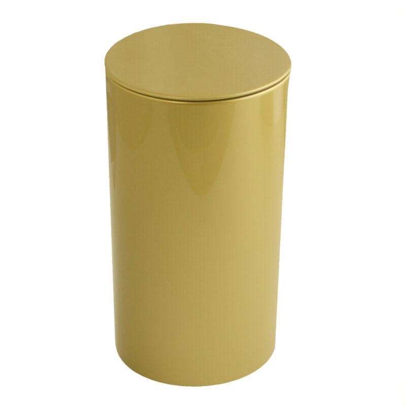 Superleuk blik om te beplakken met vinyl. Mooi afgewerkt in glanzende kleuren, met een mooi sluitend deksel.