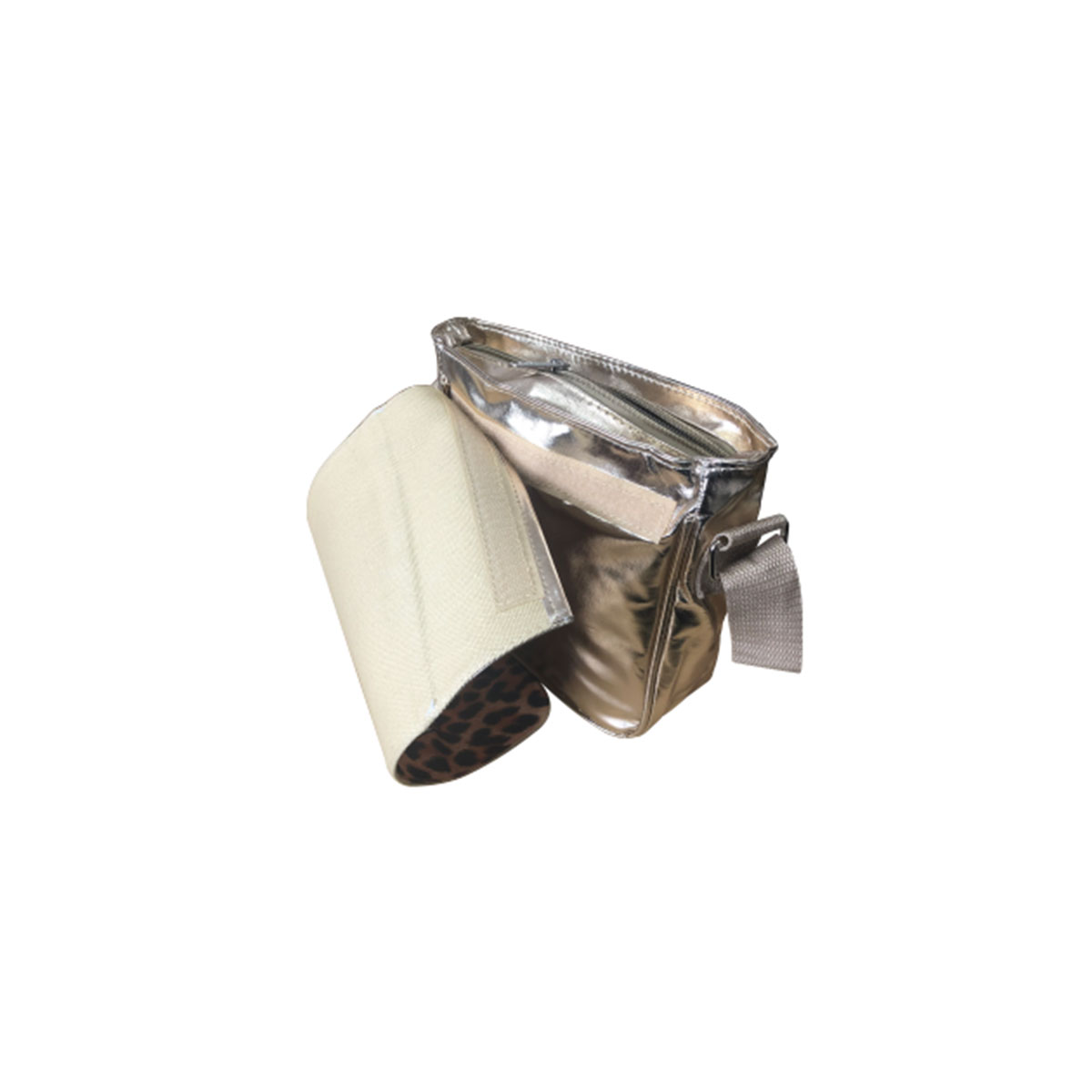 De tas heeft een klittenband sluiting.