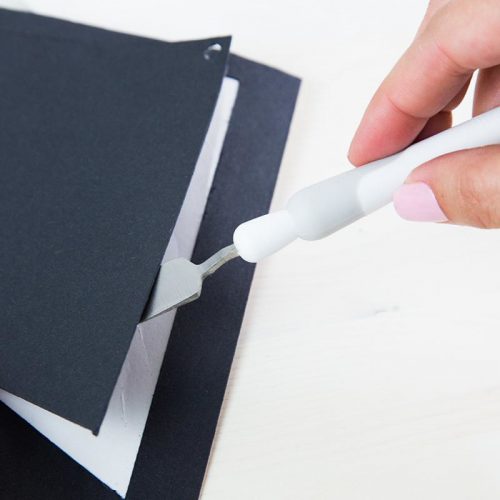 Of als een sticker even niet meewerkt met wat jij in gedachten had, dan kun je het stukje vinyl makkelijk oppakken en goed plaatsen met de Silhouette Spatel!