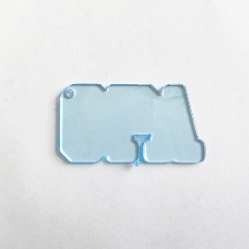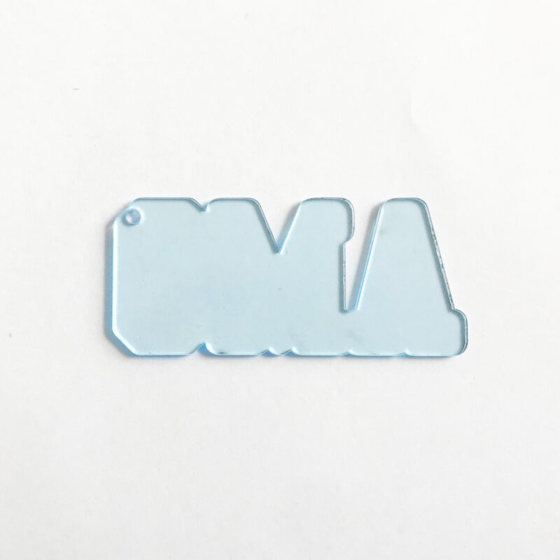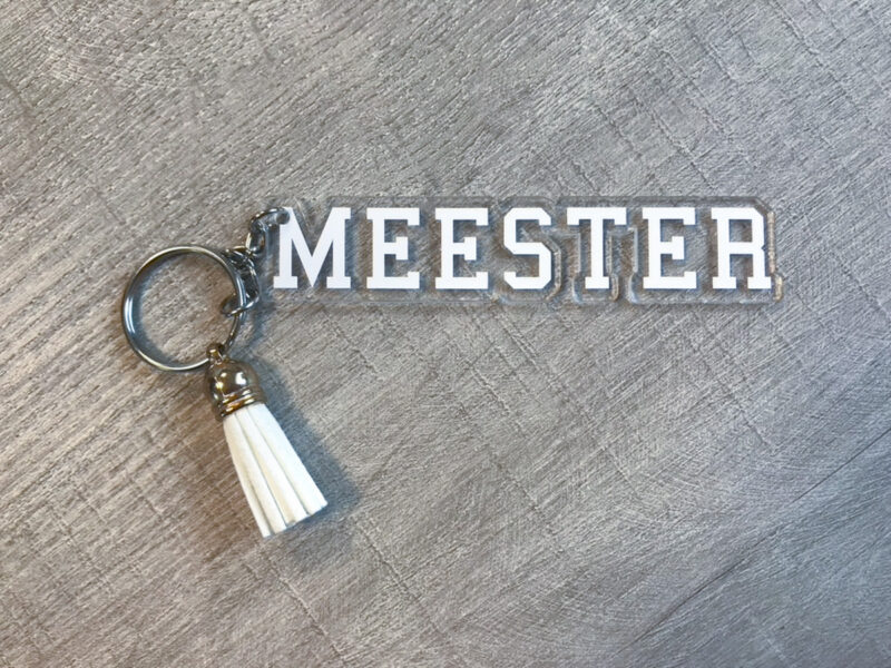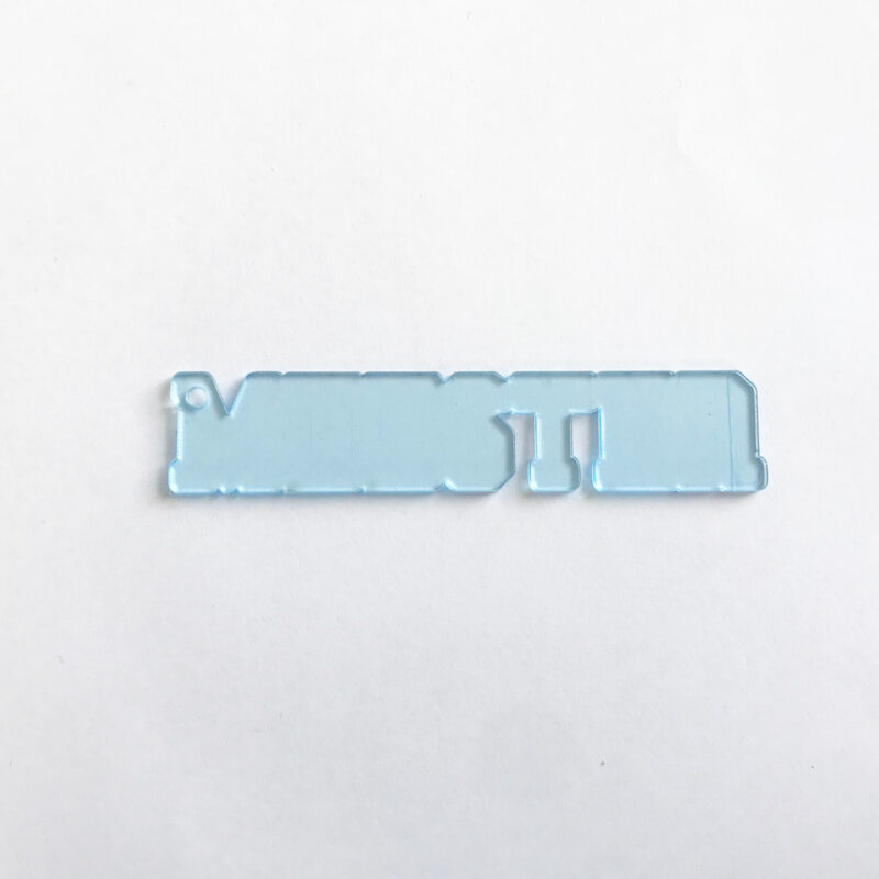 De sleutelhangers zijn gemaakt van transparant acryl. Er zit een blauwe beschermfolie aan beide kanten.