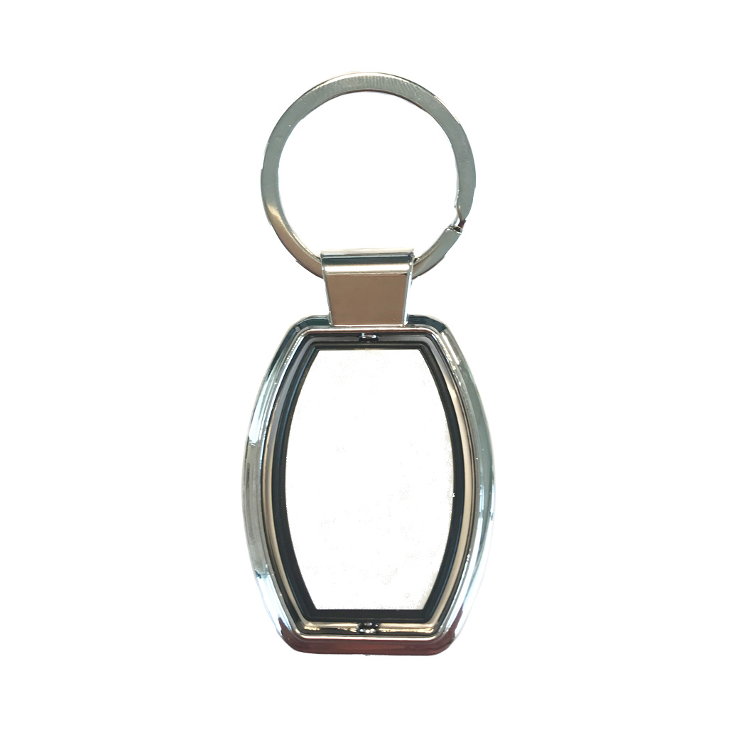 Metalen sleutelhanger geschikt voor sublimatie. Het sublimatie gedeelte kan draaien en aan twee kanten voorzien worden van sublimatie afbeeldingen.