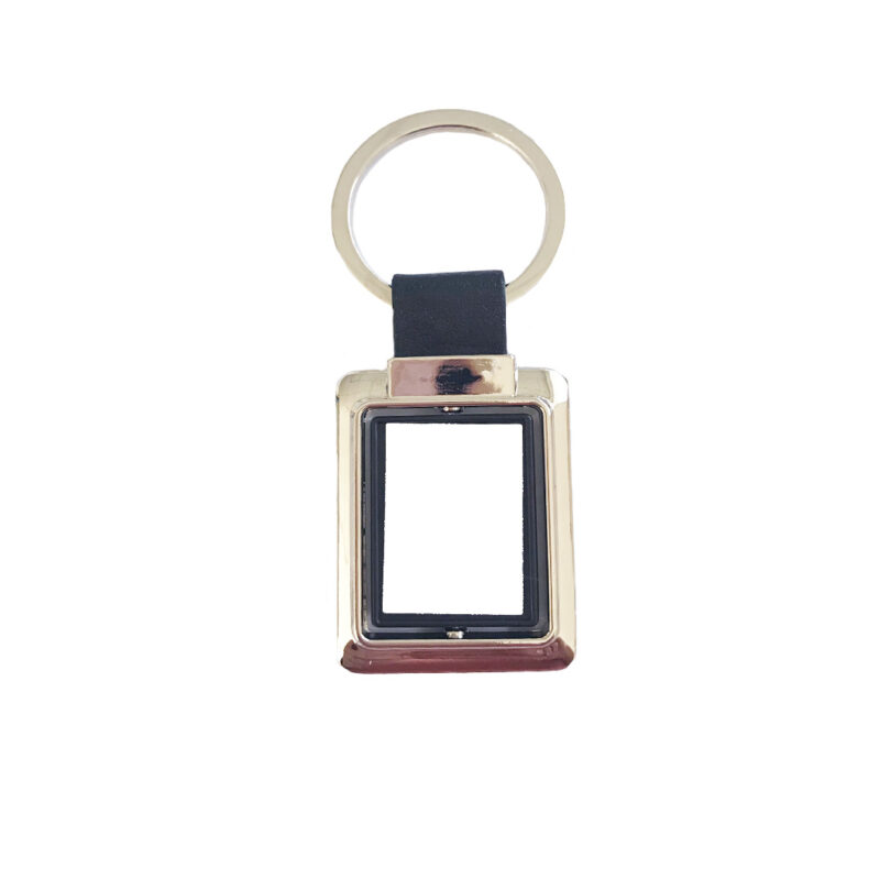Metalen sleutelhanger geschikt voor sublimatie. Het sublimatie gedeelte kan draaien en aan twee kanten voorzien worden van sublimatie afbeeldingen.