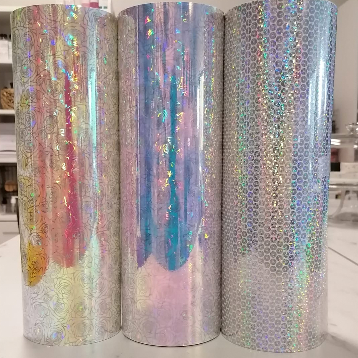 Superior® Holografisch Craft Vinyl is een 100µ dikke holografische decoratieve snijfolie met permanente lijmlaag, de kleur veranderd bij iedere lichtval en is voorzien van een rozen of sequins patroon. Deze folie is geschikt voor opvallende (interieur) personalisatie en niet voor langdurig buitengebruik. Voor het overzetten van de folie op uw gekozen ondergrond heeft u applicatiefolie nodig. Dit kan zowel een plastic transferfolie of papieren transferfolie zijn.