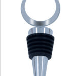 Deze wijnstopper heeft een moderne RVS uitstraling met zwarte kunststof ringen.